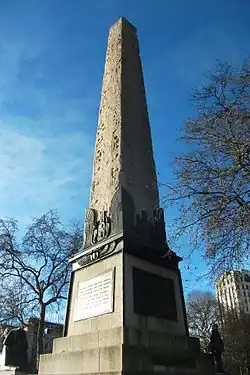 In der Zwischenzeit übergab Muhammad Ali Pascha einen Obelisken an Frankreich zur Verbesserung der Beziehungen zwischen beiden Staaten. Dies stieß in England auf Empörung, und es wurde versucht, an den Patriotismus zu appellieren. 1832 versuchte Joseph Hume von der Opposition mit dem Argument eines Gesichtsverlusts Englands gegenüber Frankreich vergeblich, das englische Königshaus davon zu überzeugen, die Initiative zu ergreifen und den Obelisken zu holen. Frankreich transportierte seinen Obelisken für umgerechnet etwa 80.000 Pfund nach Paris.[14]