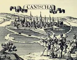 - Illustration von Lukas Schnitzer von 1665: Abbildung der Vestung Canischa, welche den 27 Apprill 1664 von den Christen Vergeblich belägert worden (Digitalisat)