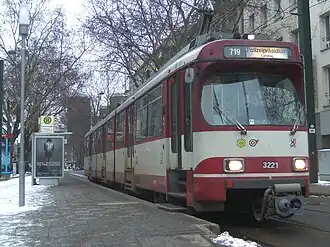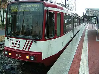 Hochflurbetrieb der Rheinbahn; verkehrt nur Mo–Fr 5–21 Uhr und Sa 8–21 Uhr