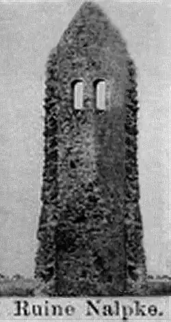 „Das Domkapitel habe aber vor 100 Jahren Nalpke eingenommen und da Steine zur Rothenföhrischen Wassermühle gebraucht wurden, wovon verschiedene Traditiones herumgehen, was bei Tage von diesen Steinen gebaut, des Nachts wieder eingefallen, deswegen sei der Turm zum Wahrzeichen noch stehen lassen.“[7]