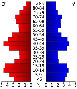 Auf das gesamte County bezogen setzte sich die Bevölkerung zusammen aus 27,9 Prozent Einwohnern unter 18 Jahren, 6,8 Prozent zwischen 18 und 24 Jahren, 23,6 Prozent zwischen 25 und 44 Jahren, 22,0 Prozent zwischen 45 und 64 Jahren und 19,7 Prozent waren 65 Jahre alt oder darüber. Das Durchschnittsalter betrug 40 Jahre. Auf 100 weibliche Personen kamen 104,2 männliche Personen. Auf 100 Frauen im Alter von 18 Jahren oder darüber kamen statistisch 101,9 Männer.