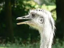 Die Nandus (Rhea) bzw. Ñandús sind eine in Südamerika beheimatete Gattung bzw. Familie (Rheidae) der Laufvögel mit drei Arten. Sie weisen alle ein graues Gefieder auf. Zu ihren typischen Merkmalen zählen die verhältnismäßig großen Augen sowie der breite und flache Schnabel.[1] Nandus gehören zu den charakteristischen Großtieren der Grasländer in subtropischen und gemäßigten Breiten Südamerikas.