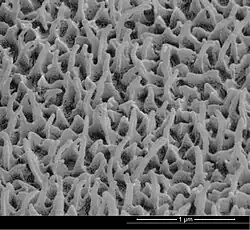 Nanosäulen auf der Flügeloberfläche des Glasflügelfalters