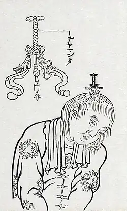 1641 verlegte die Niederländische Ostindien-Kompanie (VOC) auf Befehl der Tokugawa-Regierung (Bakufu) ihren Sitz von Hirado auf die künstliche Insel Dejima in der Bucht von Nagasaki. Von nun an standen die dort arbeitenden Europäer unter der Kontrolle des von der Regierung eingesetzten Nagasaki-Gouverneurs, und die Sprachmittlung war einer kleinen Gruppe von „Holland-Dolmetschern“ (Oranda-tsūji) vorbehalten.[5] Wenn nicht außergewöhnliche Vorgänge zur Auflösung des Dienstverhältnisses führten, blieb dieses Amt bis ins 19. Jh. in der betreffenden Dolmetscherfamilie. Einige darunter nutzten ihre privilegierte Position im europäisch-japanischen Austausch und machten sich durch Exzerpte, Schriften und Ausbildung von Schülern einen Namen als Spezialisten für Medizin und andere Bereiche westlichen Wissens.