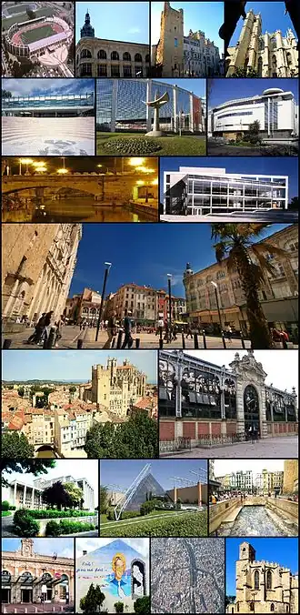 Narbonne liegt unweit der Mittelmeerküste am Canal de la Robine in einer Höhe von ca. 10 m ü. d. M.[1] Über einen Verbindungskanal (Canal de Jonction), der den Canal de la Robine landeinwärts fortsetzt, besteht Anschluss an den Canal du Midi. Narbonne hat Anschluss an die Autoroute A9 und an die Autoroute A61. Nächstgelegene Städte sind Béziers (ca. 35 km nordöstlich) und Carcassonne (ca. 60 km westlich), nächstgelegene Großstädte sind Perpignan (ca. 65 km südlich) und Montpellier (ca. 95 km nordöstlich). Das Klima ist warm und eher regenarm.[2]