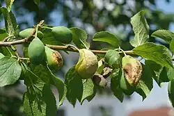 Durch eine Infektion mit Taphrina pruni missgestaltete Pflaumenfrucht