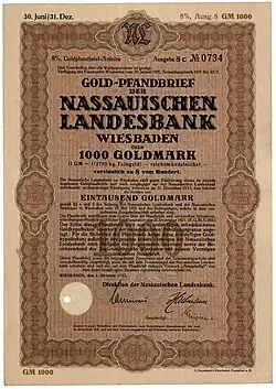 1848 wurde das Institut in Nassauische Landesbank umbenannt. Ab 1863 erhielt sie das Recht Pfandbriefe herauszugeben.[1]