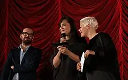 Natalie Schwager (Mitte) mit Flavio Marchetti und Katharina Mückstein bei der Wien-Premiere von Talea, 2013
