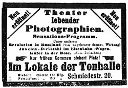 Am 30. September 1906, ein halbes Jahr nachdem mit Diercks Hansa-Kinematographen das erste Kino der Stadt den Betrieb aufgenommen hatte, eröffnete der frühere Lübecker Möbelfabrikant und nunmehrige Privatier Eduard Senff im Saal der früheren Gaststätte Tonhalle im ersten Stock des Hauses Schmiedestraße 20, der ihm seit 1904 als Lagerraum gedient hatte, ein Lichtspieltheater gleichen Namens. Das Kino wurde als Familienunternehmen geführt, in dem Eduard Senff die geschäftlichen Aufgaben wahrnahm, zwei seiner Söhne als Filmvorführer tätig waren und ein dritter für die Reklame verantwortlich war. Senffs Ehefrau Agnes übernahm den Verkauf der Eintrittskarten.