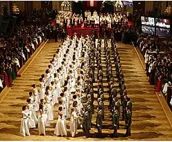 Niederösterreich | Seit 1957 finden am 15. August wechselnd in 54 Wallfahrtsorten des Mostviertels die Goldhaubenwallfahrt statt. An der jährlich stattfindenden Wallfahrt der 25 Goldhauben-, Kopftuch-, Perlhauben- und Hammerherrengruppen beteiligen sich etwa 1000 Wallfahrer aus dem ganzen Mostviertel. Am Hohen Frauentag ziehen die Teilnehmer, in Trachten gekleidet, begleitet von Musikkapellen und Chören, gemeinsam zum Festgottesdienst in die Kirche ein. Während des Festgottesdienstes wird gedankt und für eine friedvolle Zukunft und für das persönliche und familiäre Wohlergehen gebeten. Am Ende des Festgottesdienstes werden Kräuterbüschel und die Wallfahrerkerzen gesegnet.[25] Termin: jährlich am 15. August nächster Termin: 15. August 2026 | ||