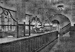 1920/21 bildete die 'Nationalbank für Deutschland' mit der Darmstädter Bank für Handel und Industrie die "Bankengemeinschaft Darmstädter-Nationalbank Berlin". Beide Banken übernahmen eine gegenseitige Garantie für Kapital und Reserven in Höhe von über einer Milliarde Mark. Die nebenstehenden Bilder zeigen eine im Mai 1922 in Lübeck neueröffnete Zweigniederlassung. In den dortigen Zeitungen hieß es in jener Zeit, dass die Räume ursprünglich für eine Filiale der Darmstädter Bank vorgesehen waren. Da die Banken aber eine Interessengemeinschaft gebildet hätten, konnten deren Interessen in der Hansestadt durch die Nationalbank vertreten werden.[1] Die beidseitigen Bestrebungen, dass im selben Jahr die vollständige Fusion zur Darmstädter und Nationalbank KG a. A. (Danat-Bank) erfolgen würde, wurde zu jenem Zeitpunkt verschwiegen.