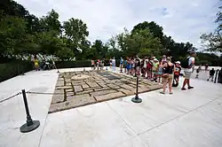 Soldaten des 3. US-Infanterieregiments „The Old Guard“ standen bis 1965 Wache bei der Grabstätte, die bis heute von Menschenscharen aufgesucht wird. Aus diesem Grund wurde 1967 eine ca. 1,3 ha große permanente Grabstätte mit gepflastertem Zugang eröffnet. Die Propangasleitung zur Befeuerung der ewigen Flamme wurde durch eine fixe Erdgasleitung ersetzt. Die Flamme selbst ruht auf einer runden Granitplatte mit einem Durchmesser von 1,5 m, die von mehreren unregelmäßigen Granitplatten aus einem Granitsteinbruch nahe Kennedys langjährigem Wohnort am Cape Cod umgeben ist. Auszüge seiner Amtsantrittsrede sind auf weißen Marmortafeln eingraviert. Um das Erlöschen der Flamme durch Witterungseinflüsse zu verhindern, ist ein Gerät angebracht, das einen permanenten Zündfunken erzeugt und durch Zuführung von Sauerstoff das Rußen der Flamme verhindert. Am 23. Mai 1994 wurde Jacqueline Bouvier Kennedy Onassis neben ihrem Ehemann bestattet. Deren frühzeitig verstorbene Kinder Arabella Kennedy (*/† 23. August 1956) und Patrick Bouvier Kennedy (* 7. August 1963; † 9. August 1963) wurden bereits wenige Wochen nach Kennedys Tod exhumiert und bei ihrem Vater beigesetzt. Die letzte Ruhestätte von JFKs 1968 erschossenem Bruder Robert „Bobby“ Kennedy liegt nahe der seines Bruders[8], ebenso wie das Grab des 2009 verstorbenen jüngsten Bruders Edward „Ted“ Kennedy.