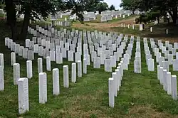 Bis Mai 2006 wurden 367 mit der Medal of Honor ausgezeichnete Soldaten auf dem Nationalfriedhof Arlington beigesetzt, von denen neun kanadische Staatsbürger waren.[17] Zu den bekannteren Militärs zählen u. a. der erste Vorsitzende der Joint Chiefs of Staff Omar Bradley (1893–1981), James Doolittle (1896–1993), bekannt durch den so genannten „Doolittle Raid“, der bekannte Admiral im Pazifikkrieg William F. Halsey (1882–1959), John „Black Jack“ Pershing (1860–1948), dem ranghöchsten US-Offizier in japanischer Kriegsgefangenschaft Jonathan Wainwright (1883–1953) sowie „Slew“ McCain (1884–1945) und John Sidney McCain junior (1911–1981), Großvater und Vater des ehemaligen republikanischen Präsidentschaftskandidaten John McCain. Die 1994 verunglückte erste weibliche Kampfpilotin der US Navy Kara Spears Hultgreen (1965–1994) wurde ebenfalls in Arlington beigesetzt.