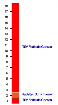 | 10. | TSV Fortitudo Gossau | 18 | 1 | 2 | 15 | 467:548 | −81 | 4:32 |