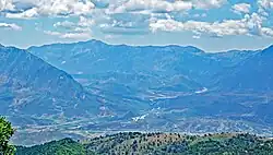 Das Tal des Drino ist zwar von hohen Bergen umgeben (Mali i Gjerë, Lunxhëria), aber recht breit. Entsprechend hat der Fluss reichlich Platz, um sich ein breites Bett mit Kies- und Sandbänken zu schaffen.[17] Nur gegen Norden kurz vor der Mündung passiert der Drino einen engeren Taleinschnitt.