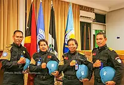 - Seksaun Jéneru (Abteilung Geschlechter). Abteilung zur Bekämpfung der Diskriminierung von Frauen. Kommandantin war 2014 Superintendente Assistente Umbelina Soares.[25] Derzeit (Stand 2020) wird die Abteilung von Julia da Gama geleitet.[26]
