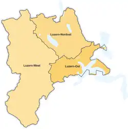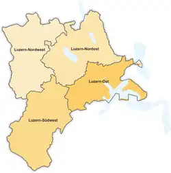 Zu einer kleinen Änderung kam es mit dem «Bundesgesetz betreffend die Nationalratswahlkreise» vom 4. Juni 1902, als die Gemeinden Emmen und Rothenburg dem Wahlkreis Luzern-Nordost hinzugefügt wurden.[2] Zuletzt umfasste Luzern-Ost somit das Amt Luzern.