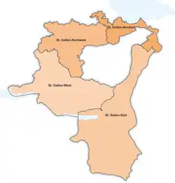1919 wurden die fünf St. Galler Wahlkreise zum heute noch bestehenden Nationalratswahlkreis St. Gallen zusammengelegt, in welchem das Proporzwahlrecht gilt.