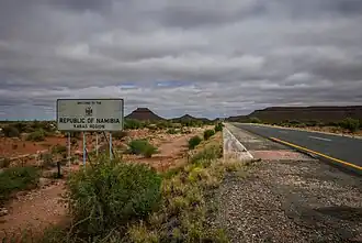 | Nationalstraße B6 an der Grenze zu Südafrika bei Ariamsvlei. | |