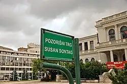 - ↑ a b Neven Svilar: Susan Sontag dobiva trg u Sarajevu. In: booksa.hr. 22. April 2009, abgerufen am 13. Oktober 2021 (kroatisch).