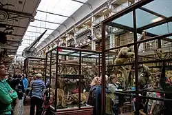 Die Art und Weise der Ausstellungen hat sich seit dem Ende des 19. Jahrhunderts deutlich geändert. Ursprünglich sollten von allen Naturobjekten repräsentative Vertreter in der Sammlung vorhanden sein und auch gezeigt werden. Daher waren wissenschaftliche Sammlungen und Schausammlungen noch vereint. Da insbesondere durch den zunehmenden Handel und die zahlreichen Forschungsreisen der Umfang des Sammlungsgutes so sehr zunahm, dass er unmöglich permanent in den Ausstellungen zu sehen sein konnte, begann man mit der Trennung von Sammlung und Ausstellung. Darüber hinaus gewannen in dieser Zeit noch heute aktuelle Themen an Bedeutung, die die ursprünglich rein systematisch aufgebauten Ausstellungen erst ergänzten, später sogar ablösten. Zu den wichtigsten Themen zählten nun die Biogeographie und die Ökologie. Damit wurde das Naturkundemuseum auch ein Erlebnisort, der meist exotische Orte und deren Lebenswelt präsentierte. Insbesondere in der zweiten Hälfte des 20. Jahrhunderts wurde zunehmend Wert auf eine gute Besucherführung, auf didaktisch aufbereitete Präsentationen und multimedialen Einsatz gelegt. Auch etablieren sich zunehmend Sonderformen des Naturkundemuseums, wie die gleichzeitige Präsentation von lebenden Tieren in den Ausstellungen (z. B. Löbbecke Museum & Aquazoo in Düsseldorf). Es gibt aber auch rückwärtsgerichtete Tendenzen, wie beispielsweise die neue Ausstellung im Muséum national d’histoire naturelle in Paris, die deutlich Aspekte des Naturalienkabinetts aufgreift.