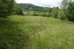 Südlich des Kreuzes befindet sich ein Haufen mit Mähguthaufen und Gehölzschnitt (Schlehen, Birken und Espen). Hier arbeitete die SGV-Abteilung Bamenohl, da das Grünland nicht mit Fahrzeugen zugänglich ist.[1]