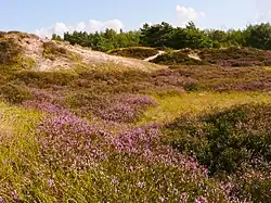 Der Dünenbereich ist als Grau- und Braundüne ausgeprägt mit eingestreuten Dünenmooren in den Senken. Typische Vertreter der Heidepflanzen sind Krähenbeere, Heidekraut und Kriech-Weide. Es finden sich zahlreiche Flechtenarten.