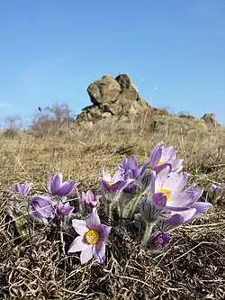 Das Naturschutzgebiet liegt an der Grenze zwischen Wald- und Weinviertel, aus floristischer Sicht ist es jedoch eindeutig der Pannonischen Florenprovinz zuzurechnen.[9] Auf den von der Granitverwitterung beeinflussten, wenig entwickelten Böden war keine ackerbauliche Nutzung möglich und so konnten sich Silikattrockenrasen ausbilden.[10] Diese werden von aus Sukkulenten, Annuellen, Moosen und Flechten gebildeten Pioniergesellschaften besiedelt. Die Vegetation besteht aus Silikatfels- und Grusfluren, bodensauren Trockenrasen und niedrigen Gebüschen. Als bezeichnende Pflanzenarten kann man u. a. Bleich-Schaf-Schwingel (Festuca pallens), Dauer-Knäuel (Scleranthus perennis), Zwiebel-Rispengras (Poa bulbosa), Zwerg-Sauerampfer (Rumex acetosella), Berg-Lauch (Allium lusitanicum) und Mild-Mauerpfeffer (Sedum sexangulare) nennen. Auf tiefgründigeren Bereichen wachsen u. a. Wallis-Schwingel (Festuca valesiaca), Erd-Segge (Carex humilis), Heide-Straußgras (Agrostis vinealis), Wiesen-Ruchgras (Anthoxanthum odoratum), Drahtschmiele (Avenella flexuosa), Pfriemengras (Stipa capillata), Ähren-Blauweiderich (Veronica spicata), Sand-Fingerkraut (Potentilla arenaria), Gelb-Lauch (Allium flavum), Heide-Ginster (Genista pilosa), Hasen-Klee (Trifolium arvense) und Groß-Küchenschelle (Pulsatilla grandis) sowie als Strauch die Zwerg-Weichsel (Prunus fruticosa). Zu den botanischen Raritäten des Gebiets zählen die Sand-Schwertlilie (Iris humilis subsp. arenaria), der Böhmen-Gelbstern (Gagea bohemica) und der Liegend-Geißklee (Cytisus procumbens).[1][11] An gefährdeten Tieren, die hier ihren Lebensraum haben, sind das Europäische Ziesel, der Feldhamster, die Sperbergrasmücke, die Gefleckte Keulenschrecke, der Schwarzfleckige Grashüpfer, der Rotleibige Grashüpfer, die Blauflügelige Ödlandschrecke und die seltene Fingerkraut-Sandbiene zu nennen.[5][7][11]