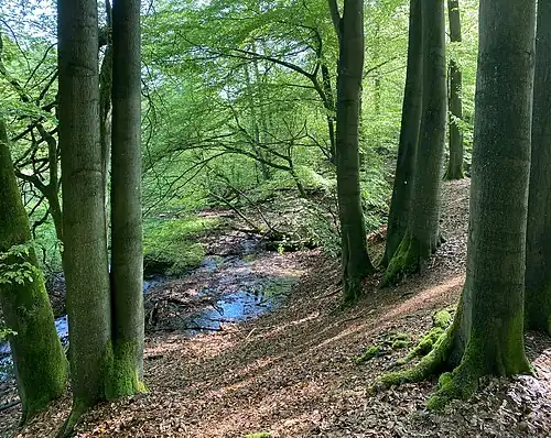 Im gesamten Waldgebiet ist von einer Vielzahl von sumpfigen, anmoorigen Quellaustritten durchsetzt, an die sich kleine naturnahe Bachläufe anschließen. An den Waldrändern liegen einige stehende Kleingewässer, die ebenso wie natürlich entstandene Bachstaus als Amphibienlaichplätze fungieren. Im Norden sind kleinflächige Feucht- und Nasswiesen sowie Röhrichte vorhanden, in dem der Bach Isebecke seinen Ursprung hat. Er windet sich naturnah nach Osten und wird kleinflächig von Erlenauwald begleitet. Durch den naturnahen Bachlauf und die im Gebiet vorhandenen Biotope Auenwald, Feucht- und Nasswiesen sowie Röhrichte bildet das Gebiet einen wertvollen Biotopkomplex.