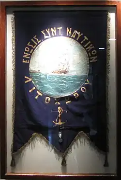 Die ausgestellten Exponate sind entweder aus den Haushalten der ehemaligen Seeleute zusammengetragen oder wurden von Reedern oder der Marine gespendet. Vor dem Gebäude sind Anker, Bojen, Schiffsschrauben und ein Torpedo ausgestellt. Obwohl das Museum der Handelsschifffahrt gewidmet ist, beginnt der Rundgang durch das Gebäude mit dem Modell eines Torpedobootes, das im Jahre 1912 vor dem Hafen Thessalonikis ein türkisches Kriegsschiff versenkte. Alte Bilder, einige fast 100 Jahre alt, zeigen stolze Familien in der Werft, die den Bau ihres Schiffes überwachen. Andere Bilder zeigen Matrosen an Bord oder im Hafen. In mehreren Vitrinen befinden sich beeindruckende Schiffsmodelle. Viele davon sind originalgetreue Nachbauten von Schiffen, die einst hier beheimatet waren. Andere stellen einen Querschnitt traditioneller griechischer Schiffe über die Jahrhunderte dar.