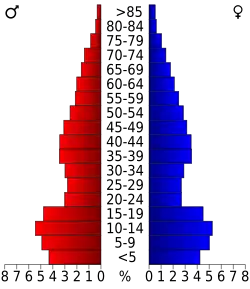 Auf das gesamte County bezogen setzte sich die Bevölkerung zusammen aus 35,40 % Einwohnern unter 18 Jahren, 8,80 % zwischen 18 und 24 Jahren, 25,30 % zwischen 25 und 44 Jahren, 20,40 % zwischen 45 und 64 Jahren und 10,00 % waren 65 Jahre alt oder darüber. Das Durchschnittsalter betrug 30 Jahre. Auf 100 weibliche Personen kamen 98,70 männliche Personen, auf 100 Frauen im Alter ab 18 Jahren kamen statistisch 97,20 Männer.