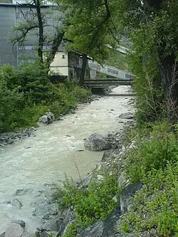 | Mündung | in Chippis in die RhoneKoordinaten: 46° 16′ 56″ N, 7° 32′ 31″ O; CH1903: 607951 / 125661 | |
