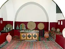 Der Wohnbereich zeigt den etwas gehobenen Lebensstandard in diesem Haus mit einigen Objekten, die zu diesem Zweck in Palästina erworben wurden. So ist der Boden mit Teppichen ausgelegt; eine Vorratstruhe ersetzt den Tisch. An den Wänden gibt es gemauerte Sitzbänke, und Nischen dienen zur Aufstellung von Öllämpchen.[7]