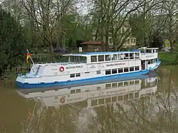 1923 Länge: 35,35 m, Breite: 5,4 m. Sogenanntes Schul- und Seminarschiff mit ca. 40 Plätzen auf dem Haupt- und 48 Plätzen auf dem Sonnendeck. Das Schiff wurde laut Dieter Schubert 1923 als Frachtschiff für den Betrieb auf der Lahn gebaut und 1983 auf der Schiffswerft Schmidt in Oberwinter zum Büroschiff umgebaut.[6] Eine andere Quelle nennt als Bauwerft De Korte in Moerdijk.[7]