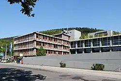Das Schulzentrum brannte am 2. Juni 2003 fast vollständig aus. Nach zwei Jahren zäher Verhandlungen, während deren der Unterricht in Behelfscontainer ausgelagert worden war, wurde bis 2008 an gleicher Stelle ein modernes, für den Ganztagesbetrieb gerüstetes Schulzentrum errichtet. Der in Passivhausbauweise erstellte Neubau wurde 2009 von der RWE Energy AG mit dem PROM des Jahres für die energieeffizienteste gewerblich oder öffentlich genutzte Immobilie ausgezeichnet.[20]