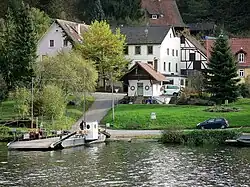 Eine der wenigen und traditionsreichen Fähren am Neckar verbindet Neckarhausen mit dem baden-württembergischen Neckarhäuserhof am anderen Ufer.[18]