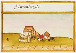 1266 wird die Burg Hammetweil erstmals urkundlich erwähnt als Nohmuotwiler. Sie wechselte in den ersten Jahrhunderten häufig den Besitzer; seit 1543 gehört das aus der Burg entstandene Rittergut den württembergischen Freiherren Thumb von Neuburg.
