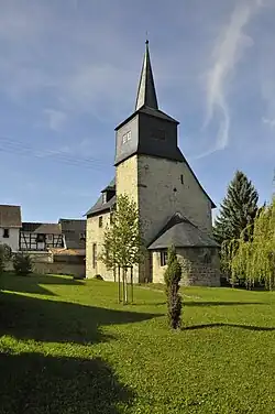 • Die evangelische Dorfkirche trägt auf ihrem Turm eine Wetterfahne aus dem Jahr 1606 und könnte an einen verspäteten gotischen Turmbau erinnern. Das Gotteshaus hat aber einen romanischen Kern.[3] Auf dem Friedhof steht eine Grabplatte zur Erinnerung an drei unbekannte Soldaten, die hier Ende des Krieges 1945 gefallen sind. Die Pfarrgemeinde gehört zum Kirchspiel Blankenhain II.