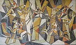 - Thuiskomst van de visvangst. Wandgemälde, Bibliothek Rotterdam, 1958