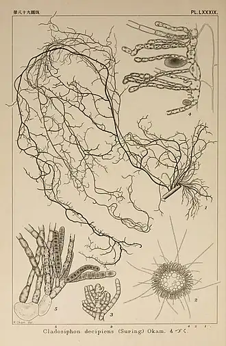 - ↑ Yde S. D. M. de Jong und Willem F. Prud’homme van Reine: A review of the genus Nemacystus (Spermatochnaceae, Chordariales, Phaeophyceae), including phylogenetic and biogeographical hypotheses. In: Nova Hedwigia. Band 64, 1997, S. 5 (englisch, Scan auf Researchgate [PDF]).