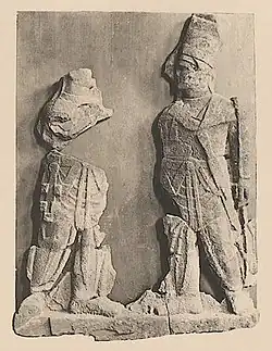 - ↑ D. H. Sanders, J. H. Young: Sculpture Analysis. In: Donald H. Sanders (Hrsg.): The Hierothesion of Antiochos I of Commagene. Eisenbrauns, Winona Lake, Ind. 1996, ISBN 1-57506-015-9, S. 448.