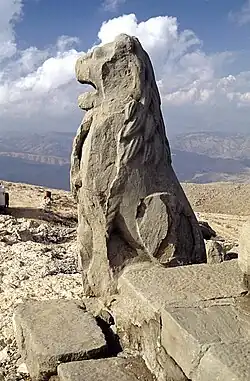 - ↑ Donald H. Sanders, Theresa Goell, John H. Young: Detailed Site Description: East Terrace, West Terrace, North Terrace. In: Donald H. Sanders (Hrsg.): The Hierothesion of Antiochos I of Commagene. Eisenbrauns, Winona Lake, Ind. 1996, ISBN 1-57506-015-9, S. 113.