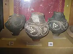 NVCC-Gefäße haben ein charakteristisches Repertoire an Formen und Verzierung. Die gängigste Form sind Becher, sowohl mit wulstförmigen Rändern als auch in Beutelform.[2] Wo Dekoration vorhanden ist, kommen Barbotine (Schlickermalerei, über und unter der Glasur), Durchstiche und Rillen vor.[3] Es gibt anfangs einige Jagdszenen in Barbotine-Ausführung, während bei den Objekten aus dem dritten Jahrhundert eher Spiralmuster vorherrschen.[2]