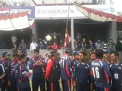 Nepal war Gastgeber des ACC Twenty20 Cup 2013, der in Kirtipur und Lalitpur ausgetragen wurde. Nepal drang bis ins Finale durch, nachdem es im Halbfinale die Vereinigten Arabischen Emirate mit sechs Wickets besiegt hatte.[48] Nepal hatte zuvor die ICC World Twenty20 Qualifier 2013 erreicht und drang bis ins Halbfinale durch, unterlag dort jedoch gegen Afghanistan mit sieben Wickets.[49] Die Mannschaft wurde während des gesamten Turnieres über von einer großen Anzahl heimischer Fans unterstützt, mit zwischen 15.000 und 20.000 Zuschauern pro Spiel (etwa 25.000 sowohl beim Halbfinale als auch beim Finale), während Hunderttausende die Spiele vor dem Fernseher verfolgten – das größte Zuschauerinteresse bisher außerhalb der Testnationen.[50] Nepal gewann die ICC World Cricket League Division Three 2013 in Bermuda und erreichte die ICC Cricket World Cup Qualifier 2014 in Neuseeland.[51][52] Ebenso nahm Nepal am ACC Emerging Teams Cup 2013 teil, zusammen mit den U-23-Mannschaften der vier Testnationen – Bangladesch, Indien, Pakistan und Sri Lanka – sowie die Vereinigten Arabischen Emirate, Afghanistan und den Gastgeber Singapur.[53] Nepal beendete die ICC World Twenty20 Qualifier 2013 in den Vereinigten Arabischen Emiraten auf dem dritten Platz[54][55] und qualifizierte sich für die ICC World Twenty20 2014, nachdem es Hongkong im Viertelfinale mit den letzten Ball besiegt hatte.[56]