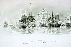 - ↑ Mostert, Noel (2008), The Line Upon a Wind: The Greatest War Fought At Sea Under Sail: 1793-1815, London: Vintage Books, ISBN 978-0-712-60927-2