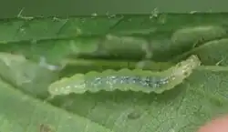 Die oligophagen Raupen fressen vorwiegend in zusammengerollten Blättern der Großen Brennnessel (Urtica dioica). Weniger häufig sind die Raupen auch an Hopfen (Humulus), Gänsefuß (Chenopodium), Melden (Atriplex) und Spiersträuchern (Spiraea) zu finden.