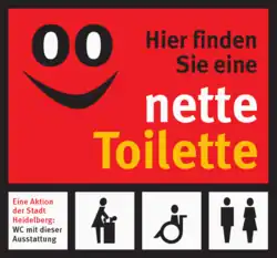 Als nette Toilette oder auch freundliche Toilette wird eine von Händlern oder Gastronomen zur kostenlosen öffentlichen Nutzung bereitgestellte Toilette bezeichnet. Dafür erhalten diese von der örtlichen Stadtverwaltung eine Aufwandsentschädigung in Höhe von 60 bis 100 Euro monatlich.[1] Die Stadt spart im Gegenzug die erheblichen Kosten für eigene öffentliche Toiletten. Da z. B. in Gaststätten an stark frequentierten Plätzen ohnehin häufig Passanten darum bitten, die Toilette benutzen zu dürfen, ohne etwas zu verzehren, können Gastronomen durch die Beteiligung an diesem Programm ihre Kosten decken, ohne von den Nichtgästen eine Gebühr zu verlangen oder ihnen die Benutzung zu verwehren, was häufig zu Konflikten und einem negativen Image führt.
