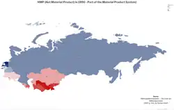 Kurz vor dem Zerfall der Sowjetunion zeigte eine Statistik den Stand des Nettomaterialprodukts in den heutigen Nachfolgestaaten der Sowjetunion im Jahre 1990:[5]