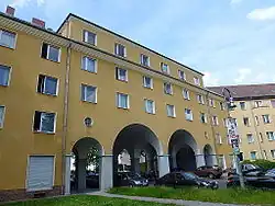 In diesem – 1931 ebenfalls von Fritz Bräuning errichteten – Bereich war ursprünglich eine Erweiterung der Gartenhaussiedlung geplant. In der Gestaltung und Anordnung der Baukörper schuf der Architekt einen organischen Übergang bzw. eine Antwort auf die von ihm erbauten angrenzenden Bereiche (Gartenhaussiedlung und Stadtmauer)