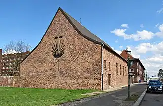 Der ursprüngliche Eingang der Kirche lag im Osten. Durch einen Umbau 1981 wurde der Eingang auf die Südseite versetzt. An der Stelle des ehemaligen Eingangs ist heute ein Buntglasmosaik zu sehen, von außen lässt sich das eigentlich Portal noch erahnen. Durch einen weiteren Umbau 2005 wurde der Eingang barrierefrei mit einer Rampe ausgestattet.